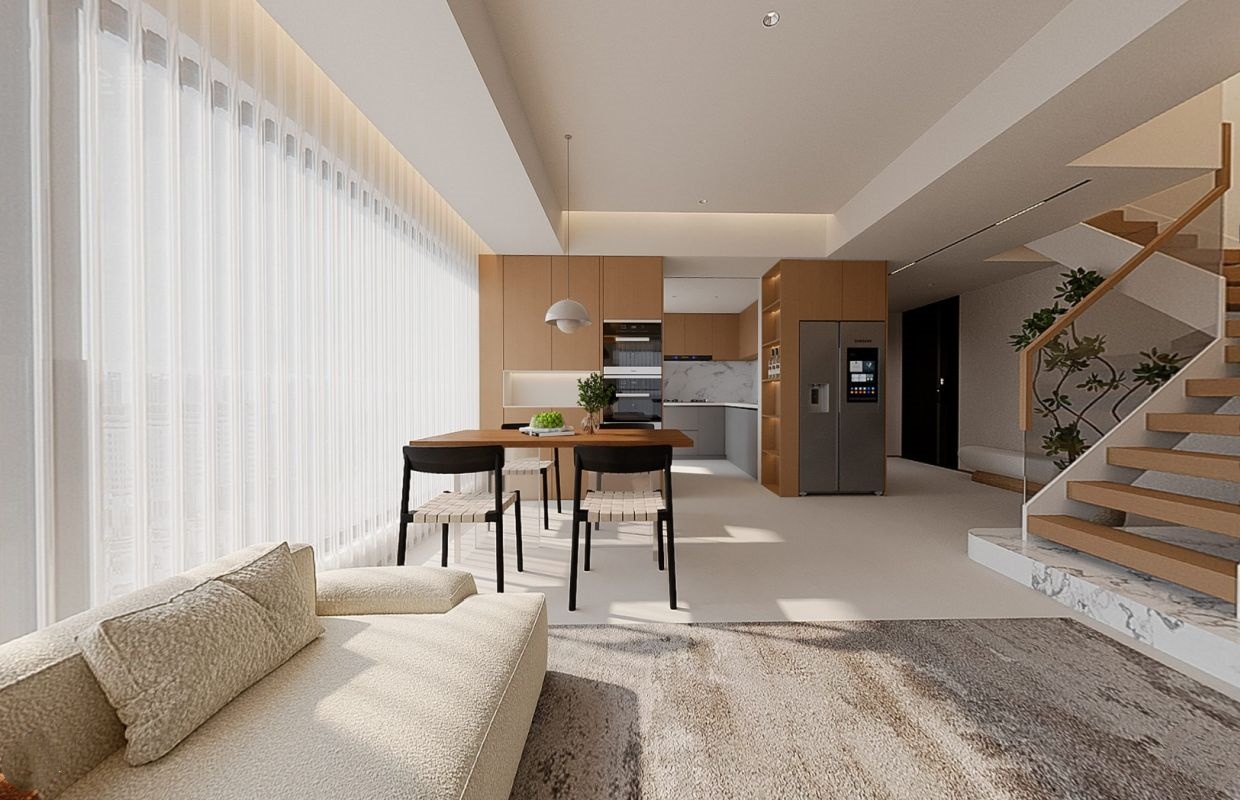 客、餐、厨一体化设计,色彩统一互联,既增强交流性,又让空间更显宽阔明亮。搭配现代感吊灯,纯粹材质与色彩碰撞,带来直接视觉冲击,勾勒出家的独特品味。