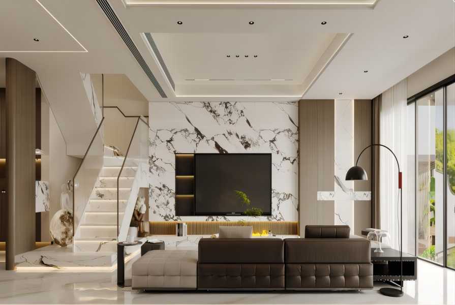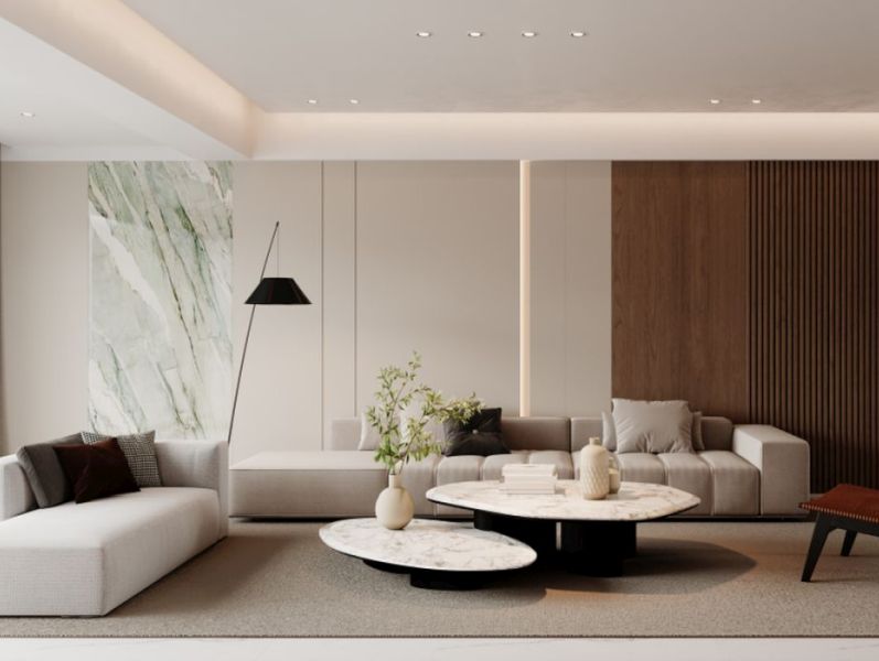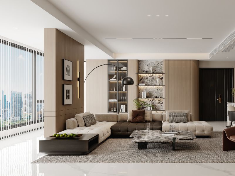 设计师在客厅空间里注入了对居住者品质与生活方式的新思考,通过流动的现代语言,将“线”与“形”贯穿整个场域,把艺术、情感与细节融汇成一个时尚舒适、精致而不乏现代风格的生活场所。
