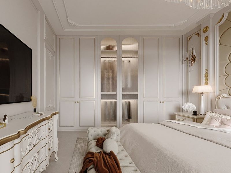 卧室延续了客厅的法式轻奢,优雅平和的色调,以其优雅、唯美的姿态,呈现了一个清新舒适的睡眠空间。