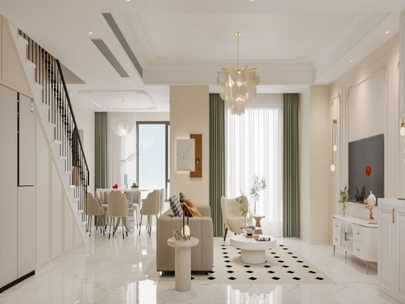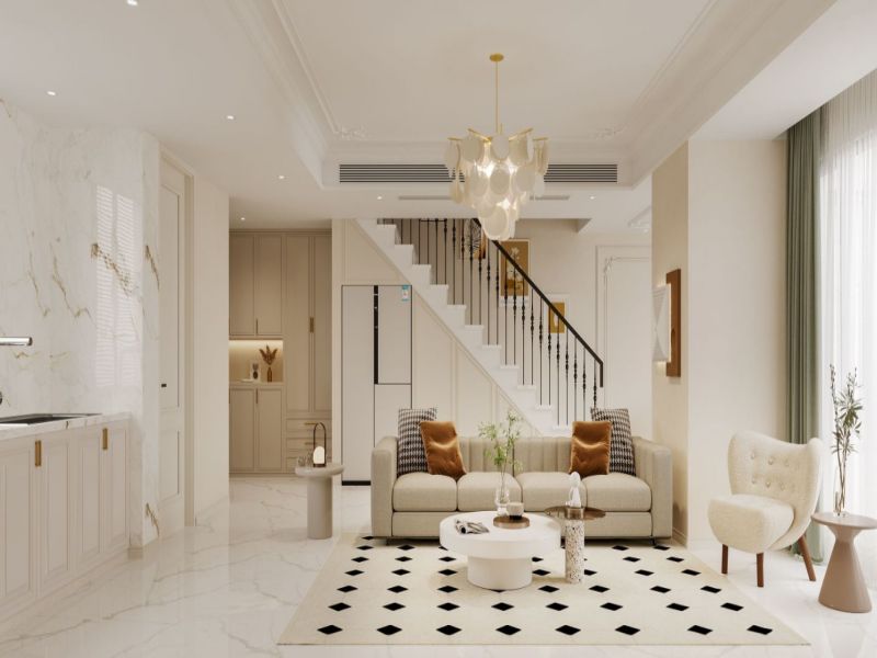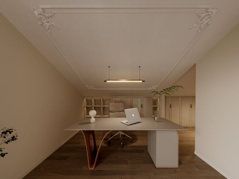 采用石膏角花进行装饰,配合边顶和双层线条,不追求强烈的色彩表达,重在营造清新、浪漫的氛围,统一的奶白色调,将空间格局打开。