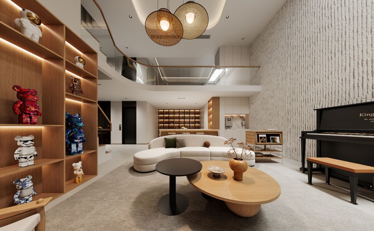 负一、二层连通形成的超高挑空,赋予空间非凡的通透视野。设计师巧妙地将地下室打造成一个兼具美感与实用性的聚会殿堂。