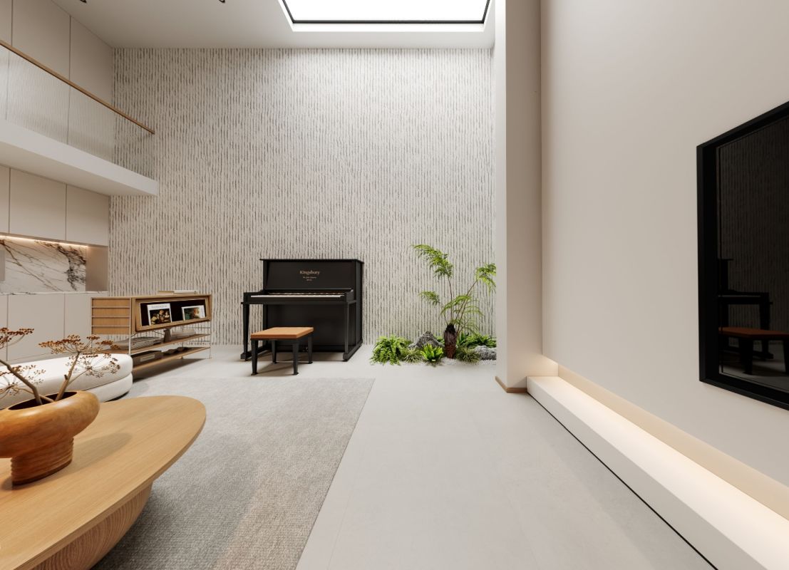 低饱和度的浅色沙发低调而优雅地静置,其简约流畅的线条仿佛是空间中的舒缓旋律,随意一靠,慵懒惬意之感油然而生。浅色柔光砖,细腻质感在日光下若隐若现,似流淌的奶油,为整个空间铺上一层柔软的 “地毯”。
