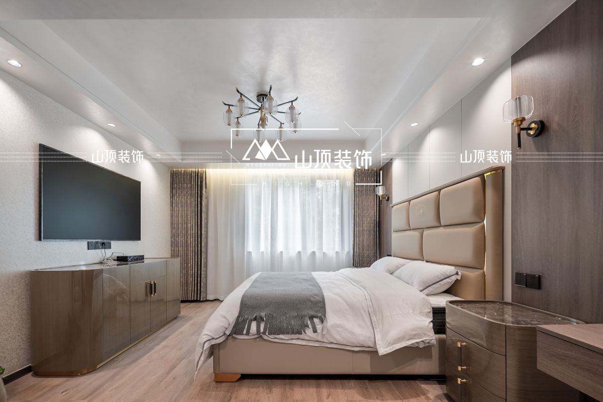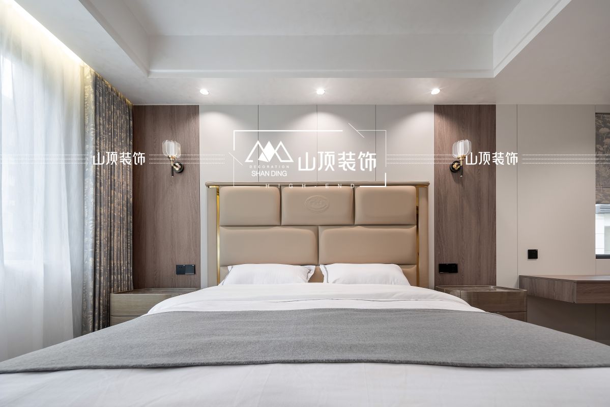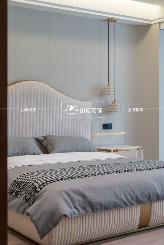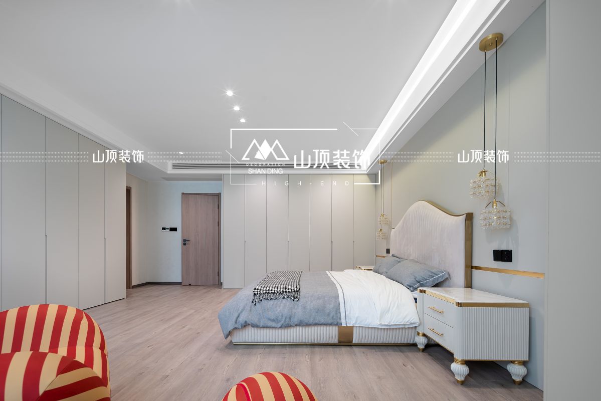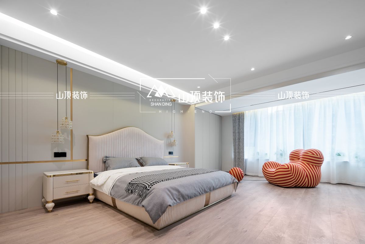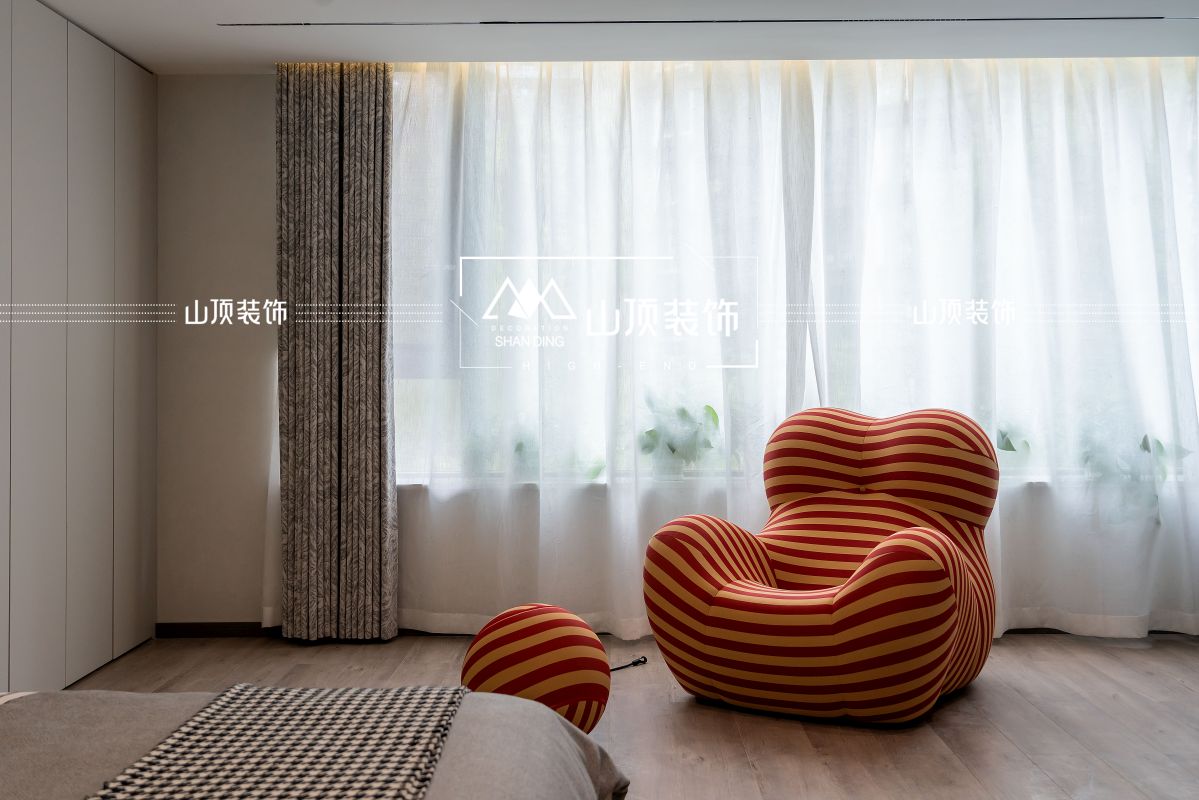 卧室延续整体的现代简约风格。主卧设有独立衣帽间,提供充裕且私密的收纳体验;次卧则配置通顶定制衣柜,线条利落。纯净温和的色调,在满足强大功能的同时,消除了体量带来的压迫感,共同营造出静谧温馨的休憩氛围,为家人与客人提供安宁的睡眠环境。
