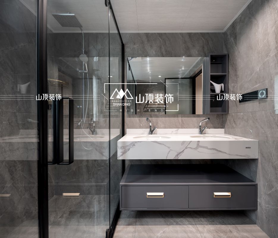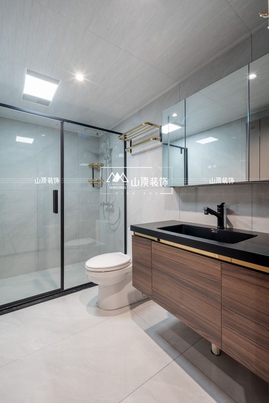 卫生间遵循干湿分离原则。盥洗区被独立出来,不仅提升了使用效率,也让空间更容易保持干爽与洁净。材质与色调的选择上,也与整体空间的现代简约风格保持统一。