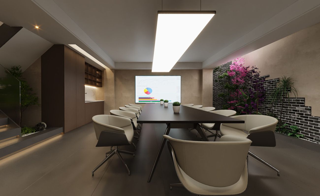 现代会议室兼顾商务需求,绿植与自然元素中和严肃感,实现茶事与办公的完美融合。从品茗闲谈、商务洽谈到会议交流,每一处空间都妥帖适配需求,让每一次到访都成为治愈身心的旅程。