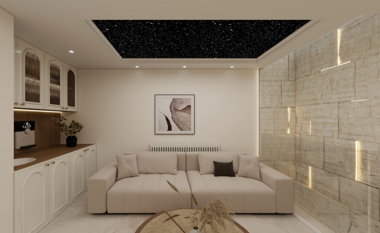 以浅色调亮整个空间,木色自然融入其中,更具自然和谐之感。再以暖色灯带点睛,顷刻激活专属家的温馨氛围。